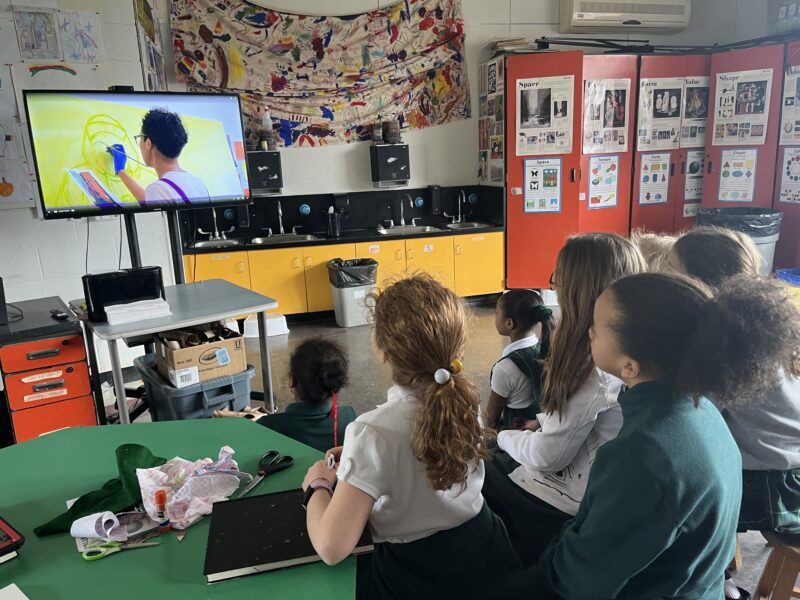 In the beginning of my career, I only showed slideshows of completed works of art in my classroom. While I meant to inspire students with these images, the pristine walls of the gallery and the sleekness of finished products often came off as intimidating rather than approachable or relatable. When I started to show Art21 videos, students got to witness artists grappling with messy, complex challenges that arise in their studios. This reflected the challenges that my students faced in their own creative process. Through Art21 videos, they saw artists fumbling and making mistakes. We saw artists like Abigail Deville make work that’s messy and complicated, rather than pristine and exact. We saw Jaimie Warren and Matt Roche create their beautifully imperfect variety show, “Whoop Dee Do,” rather than a slick Broadway production. My students saw Alex Da Corte slipping and falling flat on his butt. Rather than be embarrassed, he celebrated the slip and made it a joyful moment. These artists experimented, failed, iterated, and talked about obstacles. This allowed me to drive home the message to my students that mistakes are part of learning and creating. Experimentation and failure aren’t the enemy of success — they are a vital part of it.