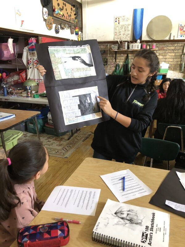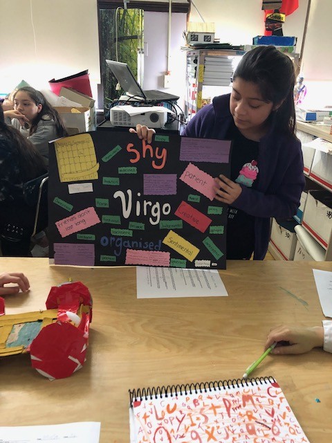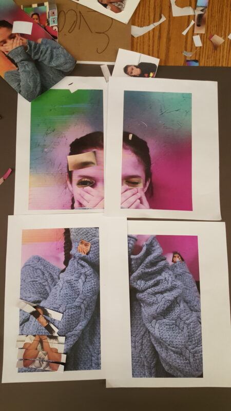 There are a couple of things that I do in my classroom to ensure this safe space. I acknowledge where the students are coming from. I make it a point to let them know that they are open to representing themselves how they see fit. I acknowledge that some students have a negative view of themselves and as a class, we discuss how this may or may not be a good idea for a project. I let students know that if they chose to approach their work from this perspective, they must be ready to discuss and share it with their peers. As part of our end-of-project presentations, each student must present their work to a group of 4 to 5 of their peers. This helps to make sure that students do not get overwhelmed with sharing anything personal with a large group, and instead can speak to a smaller group in a more comfortable space. I ask if any student is interested in sharing with the larger group towards the end of the presentations to give students the opportunity to share their work in a larger setting if they feel comfortable. I make it a point to ensure that students are listening to each other during presentations or when talking in front of the whole class. I like to emphasize that each student must listen and be respectful to each other. I also meet regularly with each student during the project creation process to check in with them and see how they are navigating their ideas.