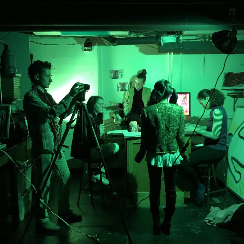 During the production and at our reflection we asked, What is collaboration? Does it have a singular definition or does it get defined through action? Is it simply working together to produce something, or can it have a broader and more ambitious effect? As a class can we build on the power that a group of students and colleagues can summon when they commit to make things together? We talked about the Beat generation writers William Burroughs and Brion Gysin, and their speculation that collaboration — what they call “the third mind” — is not just playing nice together, but rather is a “complete fusion in a praxis of two subjectivities,” a mystic combination of two different perspectives that create a new viewpoint, “two subjectivities that metamorphose into a third.” Gysin and Burroughs imply that there is more to collaboration than compromise or merely working together. In fact, collaboration can be a generative practice in itself, a way to conjure another presence, a method to bring forth a new entity from the contributions of the collaborators. The third mind appears when all these components click. It’s a type of speculative philosophy that can produce creative gold. It also can lead a class to appreciating each other and the holistic value of their studio practice, and to build a commitment to each other through empathy and shared work.