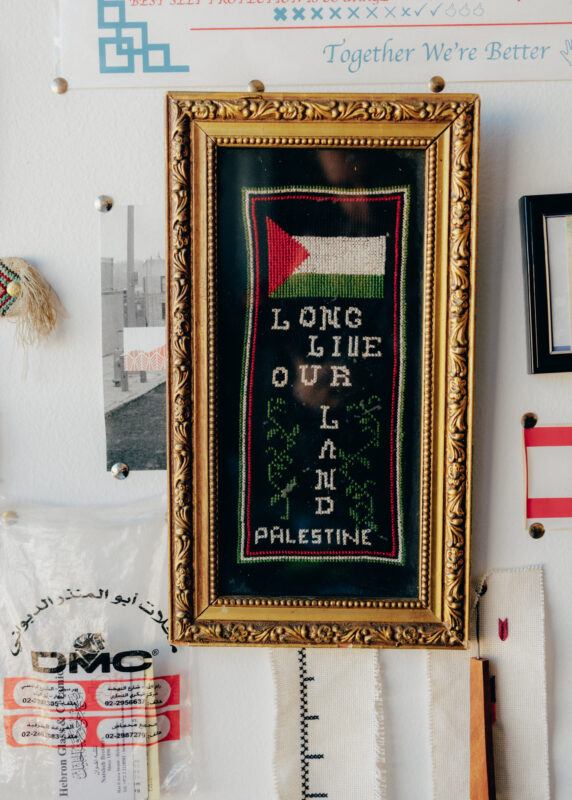 When I started dating my husband, I went to Israel with him and that was the first time that I spent time there as an adult and started to understand what it’s like there. I also visited the West Bank and saw friends and distant family who still live there and experienced what that was like. Engaging with Palestinian craft was a way for me to start thinking about how it is that I’m Palestinian, what that means to me, to my identity, and to my experience being a Palestinian member of the diaspora in America, not having been raised there. I was learning about craft traditions, the history of Palestine, all the different patterns in Palestinian embroidery, and the geolocations of the patterns. Connecting with this craft tradition opened all of that for me.
