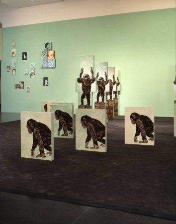 Applebroog propels her paintings and drawings into the realm of installation by arranging and stacking canvases in space, exploding the frame-by-frame logic of comic book and film narrative into three-dimensional environments. In her most characteristic work, she combines popular imagery from everyday urban and domestic scenes, sometimes paired with curt texts, to skew otherwise banal images into anxious scenarios infused with a sense of irony and black humor. Strong themes in her work include gender and sexual identity, power struggles both political and personal, and the pernicious role of mass media in desensitizing the public to violence.