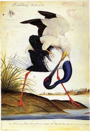 Each painting is as much a tutorial in flora and fauna as it is as a scathing indictment of the wrongs committed by nineteenth-century industrialists or—locating the work in the present—contemporary American consumer society. An enthusiast of the watercolors of John James Audubon, Ford celebrates the myth surrounding the renowned naturalist-painter while simultaneously repositioning him as an infamous anti-hero—who, in reality, killed more animals than he ever painted. Each of Ford’s animal portraits doubles as a complex, symbolic system, which the artist layers with clues, jokes, and erudite lessons in colonial literature and folktales.