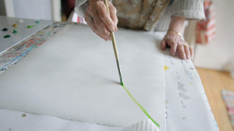 Hurtado emigrated to the United States in 1928, settling in New York City, where she studied at Washington Irving High School and attended classes at the Art Students League. In the 1940s, she worked as a fashion illustrator for Condé Nast and painted murals for Lord & Taylor. The artist spent portions of her life in Mexico City, Mill Valley, California, and Taos, New Mexico and spent time with renowned artists closely associated with Surrealism, Magical Realism, and the Dynaton Group. Hurtado’s own work often references her body and objects in her immediate surroundings, while also depicting more universal forms: human bodies dancing, colorful abstractions, blue skies with floating feathers, and mothers giving birth. These paintings and drawings engage the artist’s interest in environmental activism and feminism. Hurtado’s work was exhibited sporadically throughout her career, but remained a largely private practice. She began receiving wider critical acclaim and attention in the late 2010s.