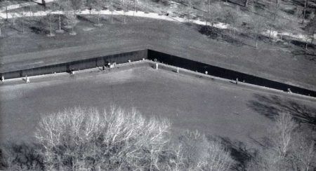 While an undergraduate student at Yale University, Lin submitted the winning design in a national competition for a Vietnam Veterans Memorial to be built in Washington, DC. In 1982, Lin constructed the memorial, a design involving two black granite walls placed below grade as if splitting the earth in two. The artist engraved the names of the men and women who lost their lives in the war, inviting viewers to touch and feel the names. “I think monuments, unlike artworks, are a blending of art and architecture,” Lin says. “They have a function, but their function is for the most part purely symbolic, so they’re in between.” In addition to designing the Vietnam Veterans Memorial, Lin also designed the 1989 Civil Rights Memorial in Montgomery, Alabama. The memorial, reminiscent of a sundial, features a black granite table with water flowing from the center across a timeline. Through her material choices and attention to the sites she works in, Lin’s memorial designs create spaces for thinking and reflection, activate the surrounding environment and ground historical events in the present.