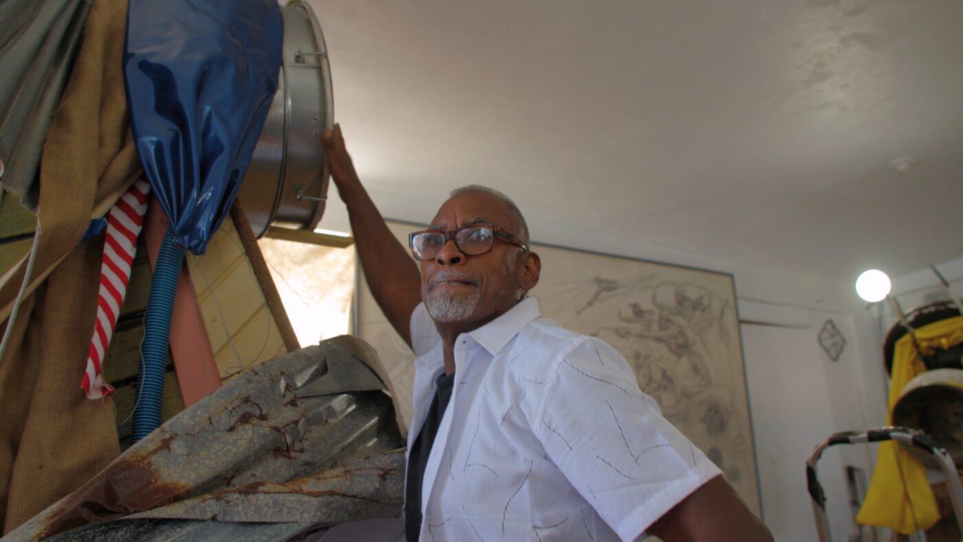 Organizing community events, Lind-Ramos invites his friends, students, and neighbors to participate in his practice, playing music and dancing or performing in homemade costumes. These events are opportunities to come together in celebration of the shared culture of Loíza, as well as to discuss frustrations around the political and social realities in Puerto Rico. In particular, these celebrations and Lind-Ramos are inspired by the Afro-Caribbean or Afrodescendiente community in Loíza, of which he is a member. Loíza has the largest population of Afro-Caribbean residents in Puerto Rico, bringing a strong African influence to the history and culture of the town. Referenced throughout Lind-Ramos’ sculptures are connections to African traditions like Yoruban religious practices and Bomba music and dance, as in Con-junto (The Ensemble) (2015). Through his work, Lind-Ramos lays the ground for viewers to think about the resistance and invention present in Puerto Rican culture and confronts the conditions which require it, connecting his experience with universal experiences of hardship and innovation.