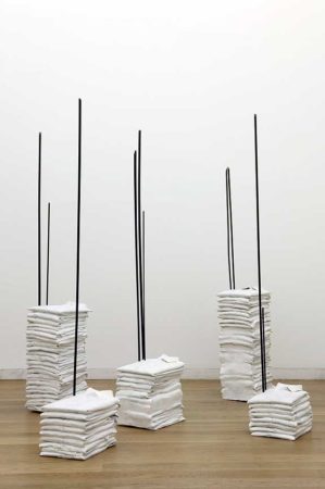 While abstract in form and open to interpretation, her works serve as testimonies on behalf of both victims and perpetrators. Even when monumental in scale, her installations achieve a degree of imperceptibility—receding into a wall, burrowed into the ground, or lasting for only a short time. Salcedo’s work reflects a collective effort and close collaboration with a team of architects, engineers, and assistants—and, as Salcedo says, “with the victims of the senseless and brutal acts” to which her work refers.
