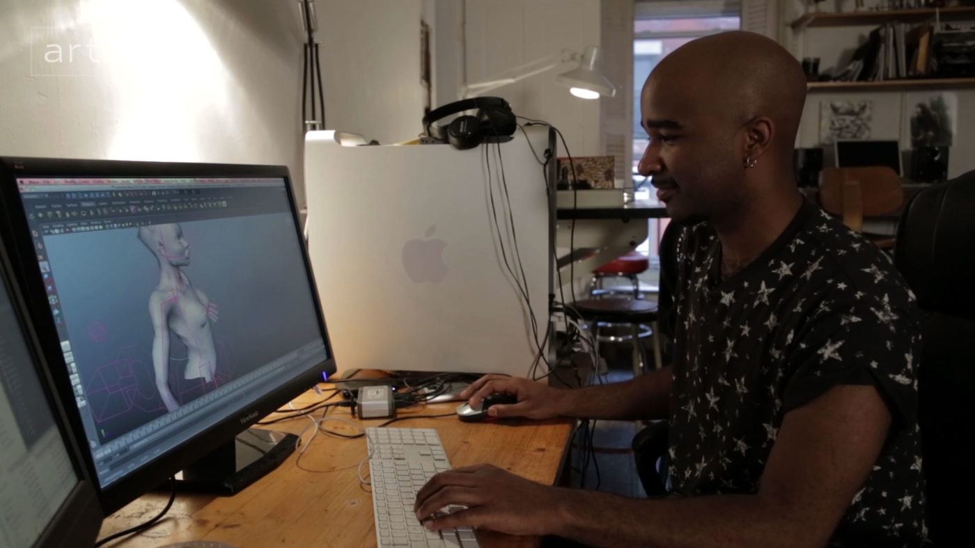 Jacolby Satterwhite was born in 1986 in Columbia, South Carolina; he lives and works in New York. Bringing together such practices as vogueing, 3D animation, and drawing, Satterwhite’s dreamlike videos explore his own body and queerness while also incorporating his mother’s identity, her schizophrenia, and the thousands of illustrations she made throughout his childhood.