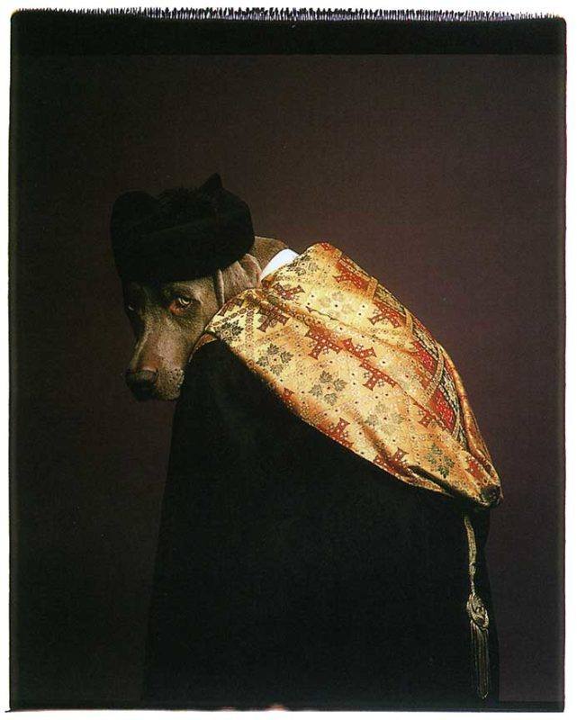 A central figure in Wegman’s photography and videos, Man Ray became known in the art world and beyond for his endearing, deadpan presence. In 1972, Wegman and Man Ray moved to New York. In 1986, a new dog, Fay Ray, came into Wegman’s life; and soon thereafter another famous collaboration began, marked by Wegman’s use of the Polaroid 20-by-24-inch camera. With the birth of Fay’s litter in 1989 and her daughter’s litter in 1995, Wegman’s cast of characters grew.
