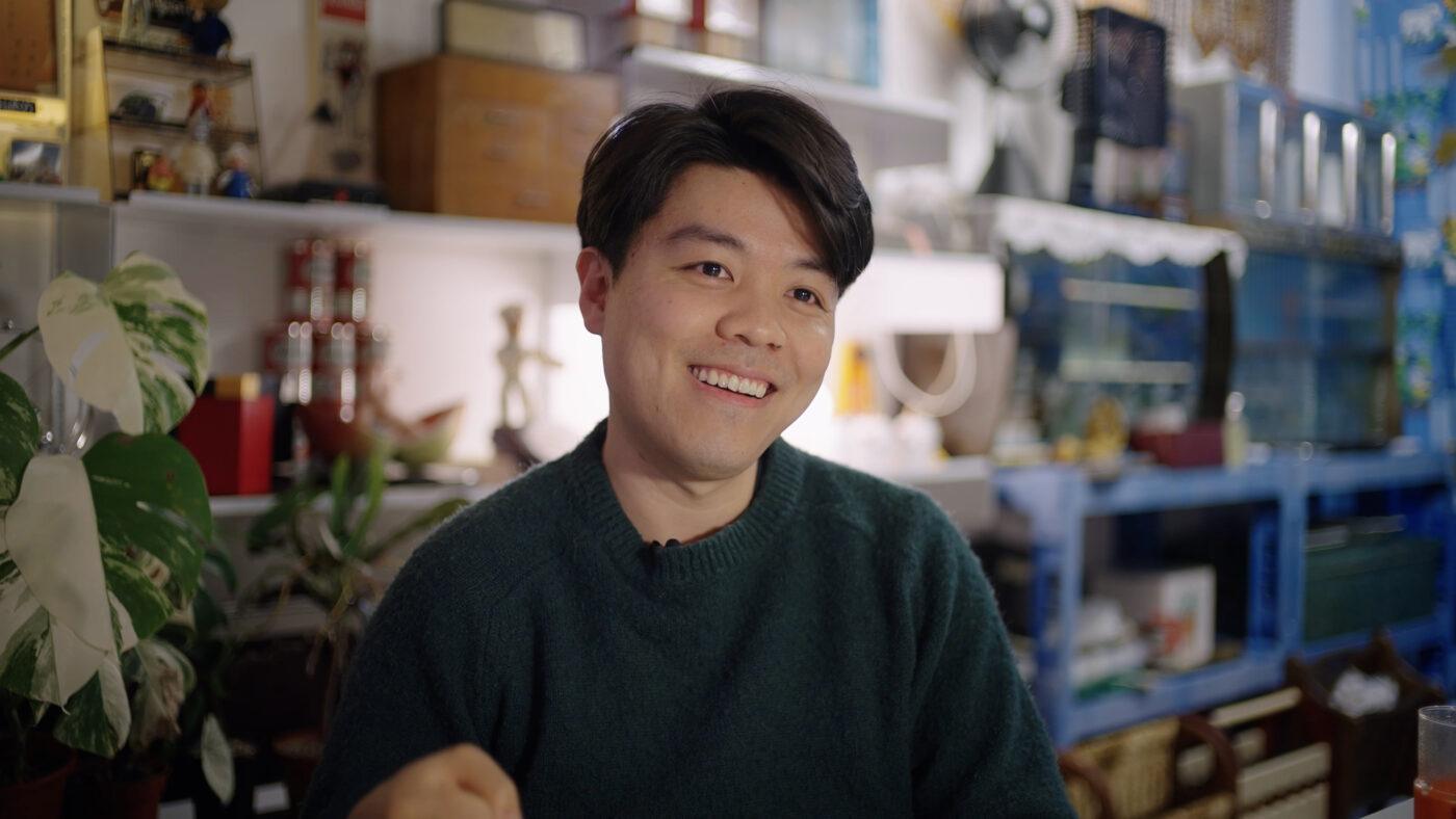 Throughout his practice, the artist explores modern life and the subconscious, critiquing society through comical and often salacious scenarios. In one of his earliest films, Stop Peeping (2014), Wong narrates the thoughts of an overworked and isolated protagonist as he spies on the college student who lives next door to him. As the animation progresses, the narrative delves into absurdity, the irreality of the scenario opening the door to deeper questions about loneliness and desire. Wong balances the heavy themes of his work with absurd humor and his signature animation style of bright colors and simple geometries, disguising poignant observations of human behavior and societal failures within a playful and disarming aesthetic. An Emo Nose (2015), a film about a depressed protagonist, explores the depth of the protagonist’s ennui through his anthropomorphized heart-shaped nose as it struggles to escape his negative energy. In Jungle of Desire (2016), the narrator questions his feelings of powerlessness in his relationship and his life while dreaming of a fantastical revenge plot concerning the police officer taking advantage of his wife. In each of these works, sexual themes and humorous scenarios lead audiences to deeper questions.