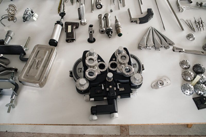 Por un lado, la optometría estudia los defectos en la visión y en la identificación biométrica, yo veo irregularidades en la visión que son inherentes al sistema y que conducen a la criminalización de grupos sociales y marginados. Entonces, al estar pensando en los problemas e irregularidades de visión de un sistema, decidí utilizar un aparato óptico que estudia la deformación de la vista y que se llama queratómetro, el que encontré aquí en México es de 1950 y parece un arma de destrucción.
